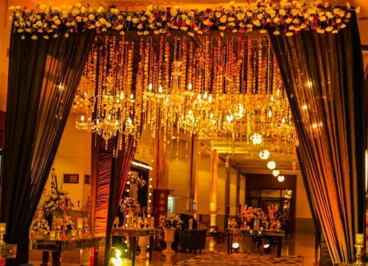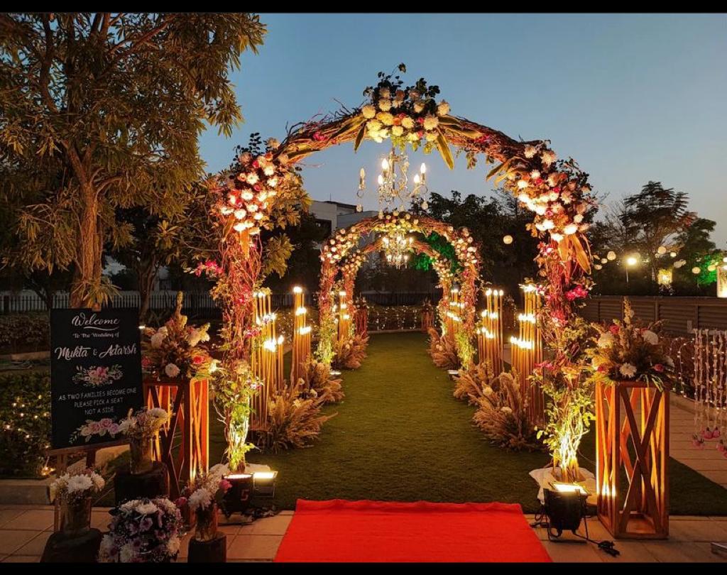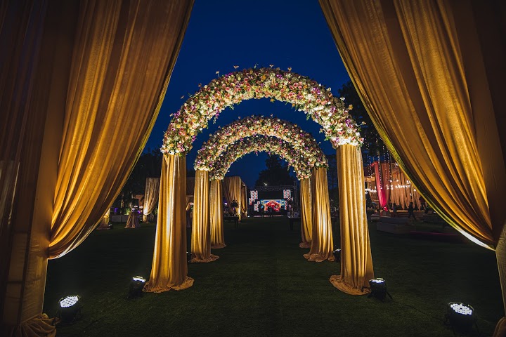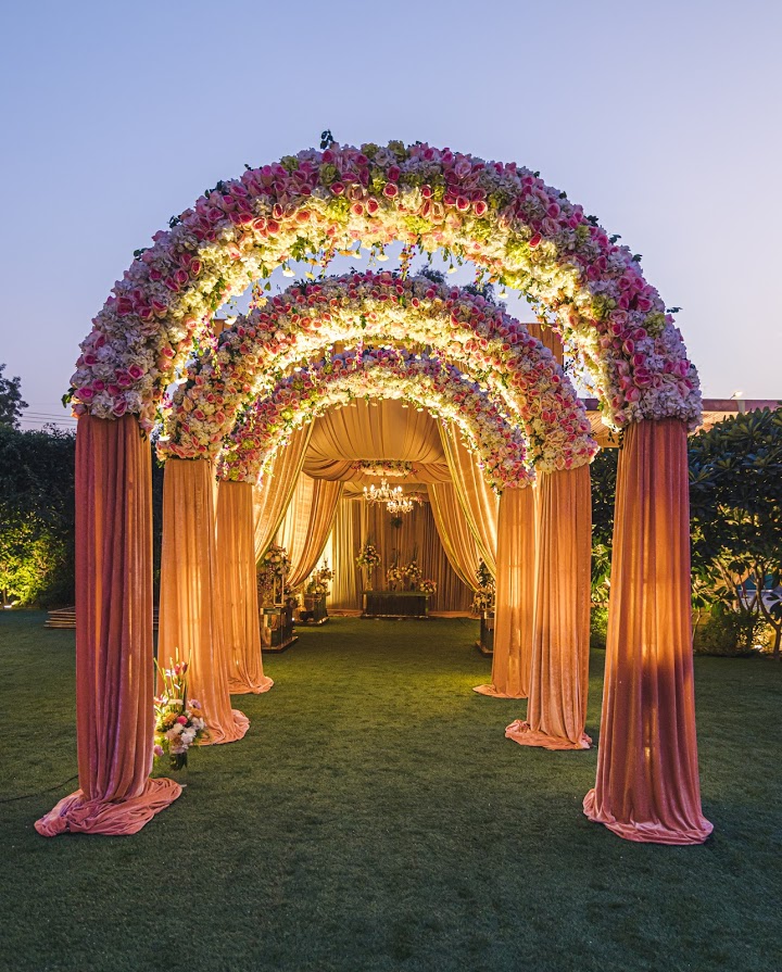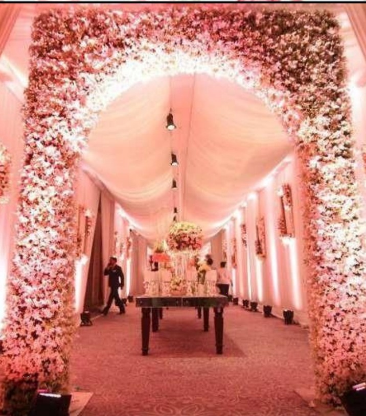 Welcome your guests with warmth and splendour as our entrance decor sets the tone for a magical celebration ahead, adorned with blooming florals and twinkling lights.
