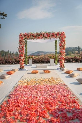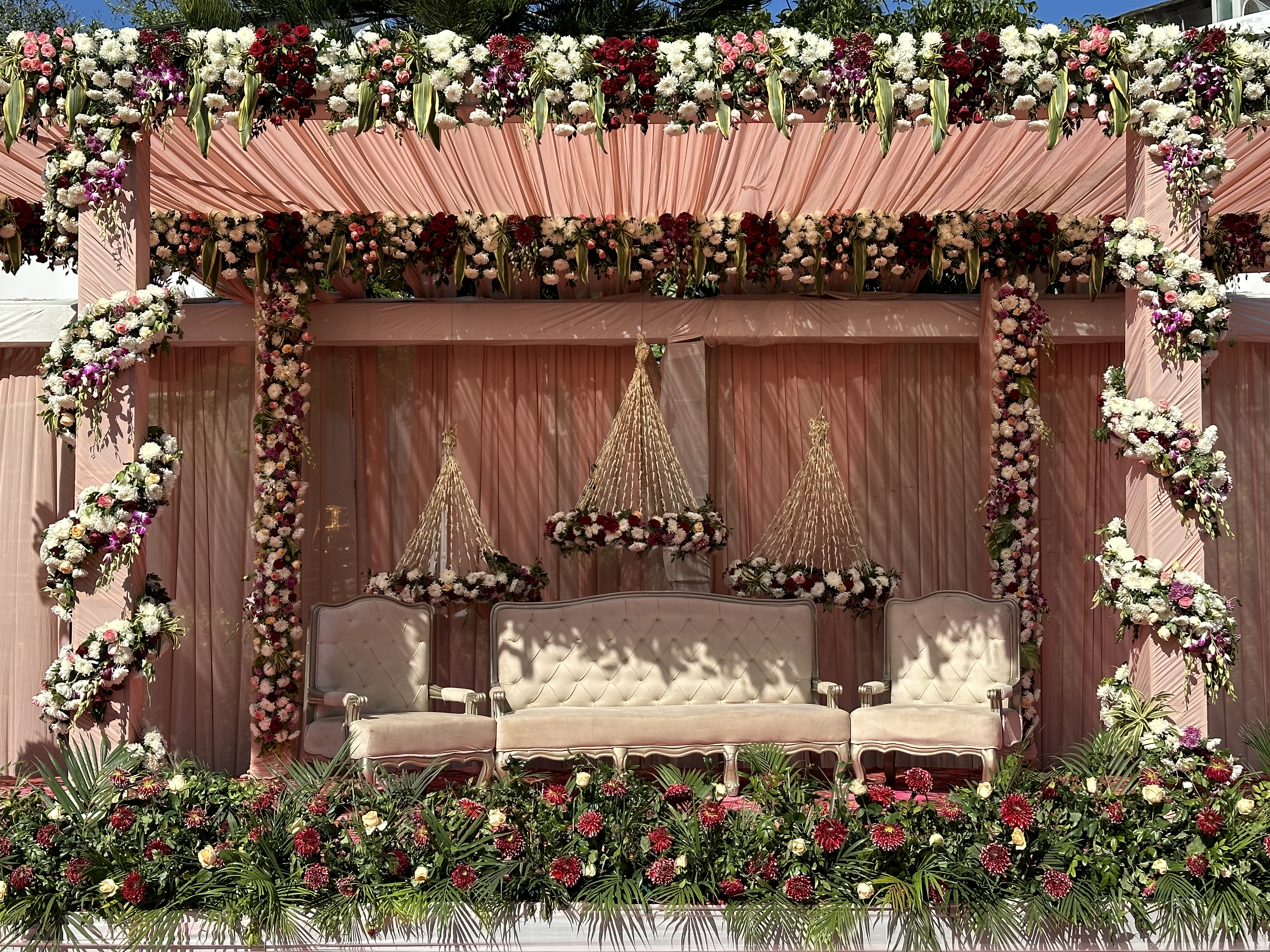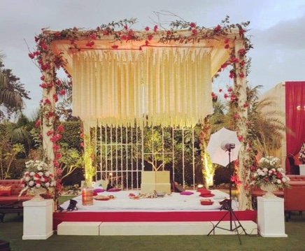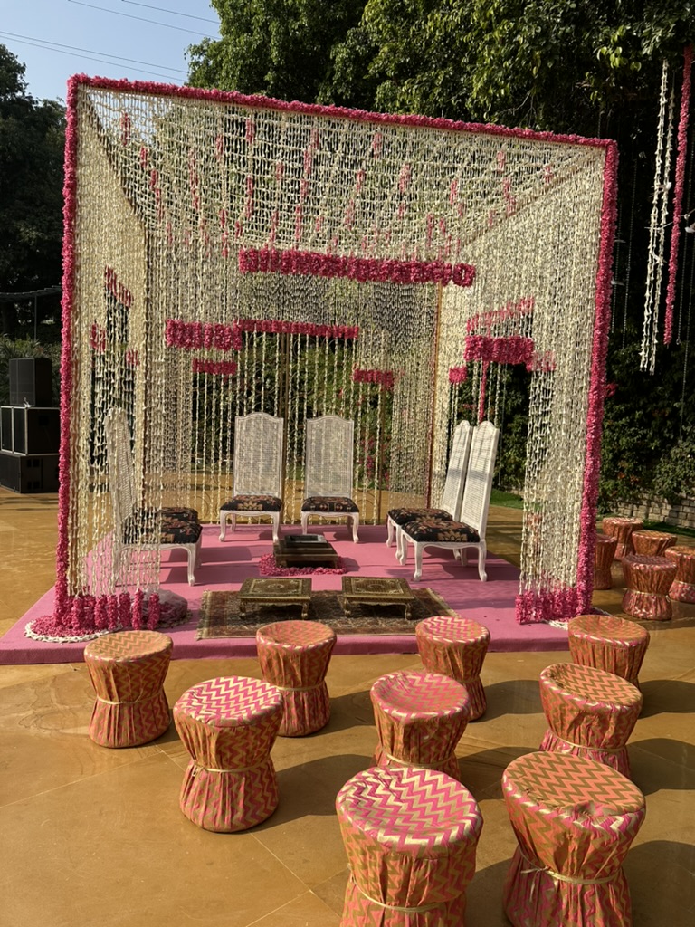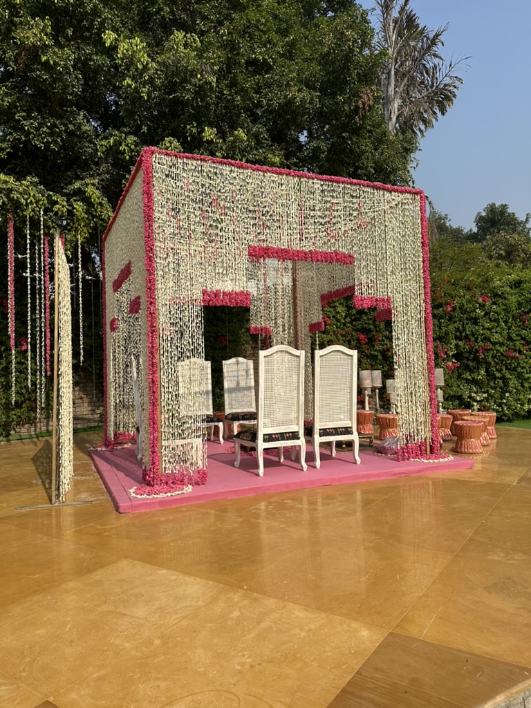 Our Mandap designs blend tradition with elegance, creating a sacred space where vows are exchanged and love blooms, inviting you to witness the beauty of timeless romance.
